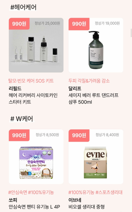 첫 구매 회원은 몇 가지 상품이 100부터 있어서 구입할 수 있다.
